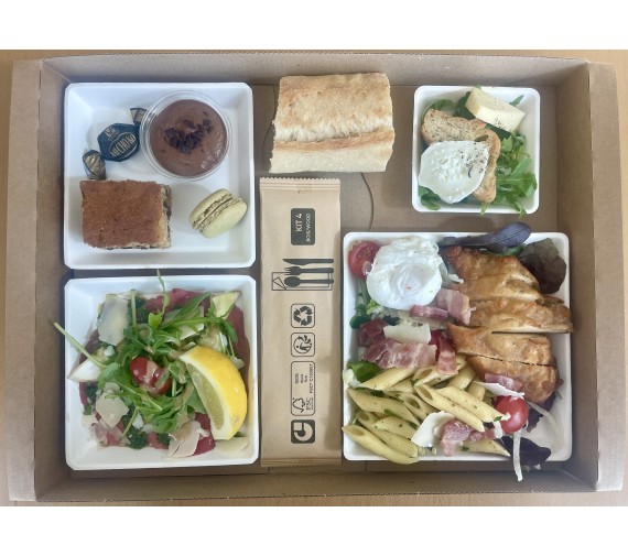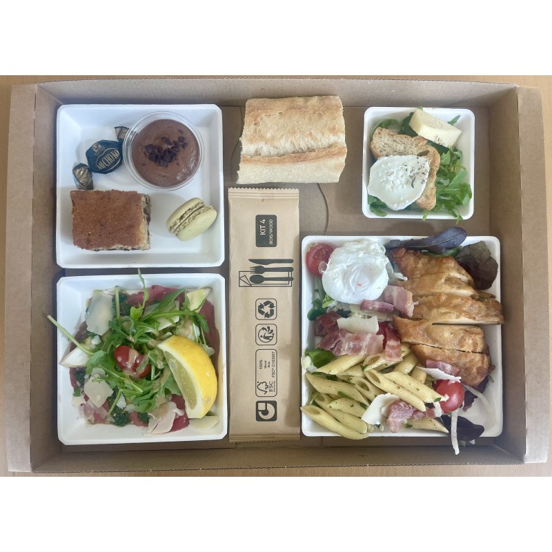 Livré avec couverts, serviette et pain frais du boulanger